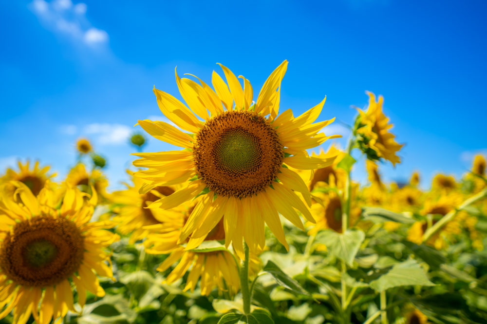 • 三分割構図:画面の1/3をひまわり、2/3を空にするとバランスが美しい