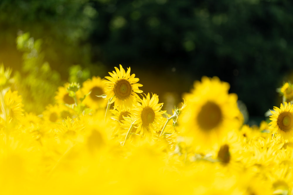 • 花を前ボケに使う:手前にひまわりをぼかして入れると奥行きが出る